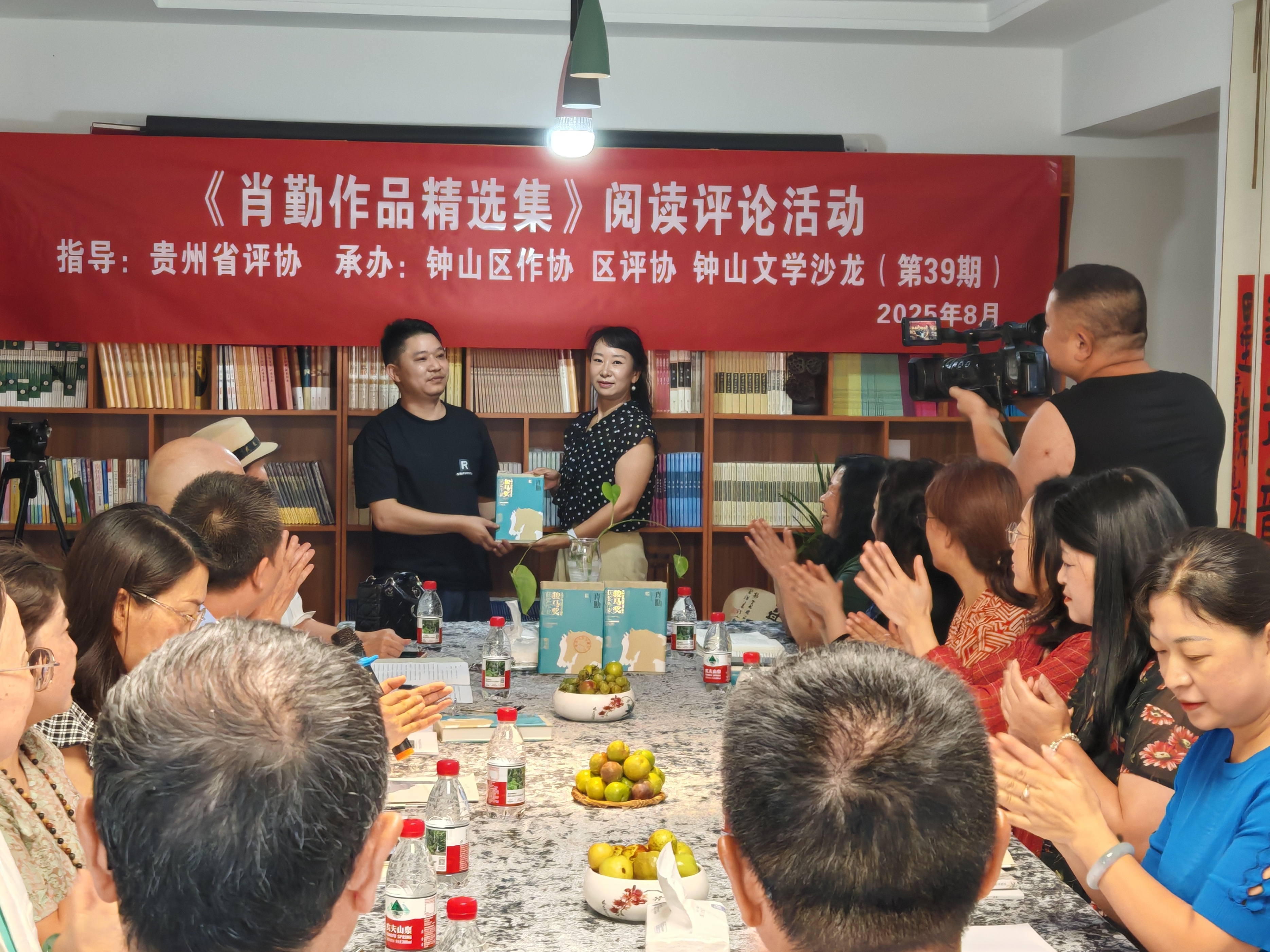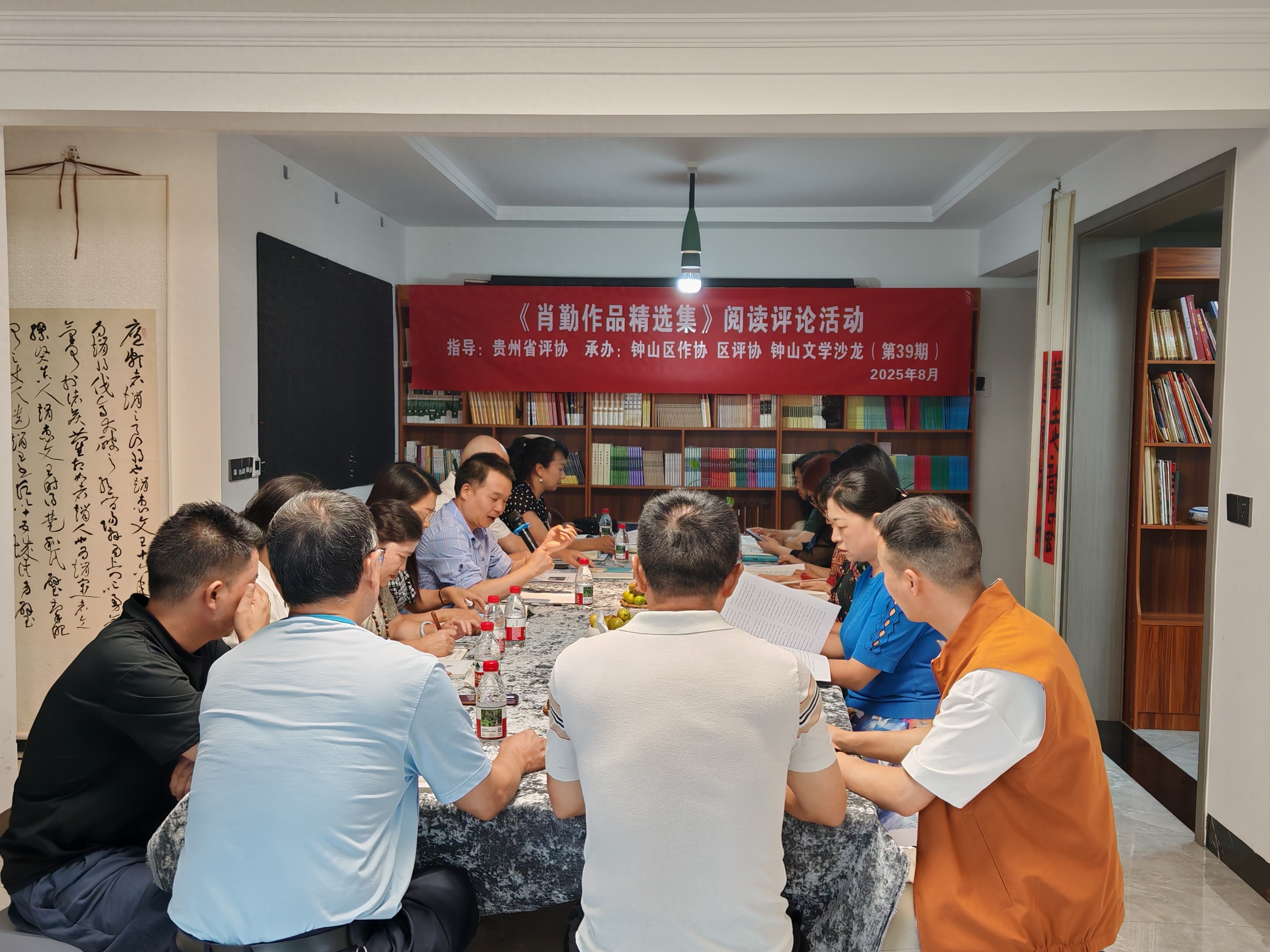 8月10日,第十届全国少数民族文学骏马奖获得者、贵州作家肖勤的中短篇小说集《肖勤作品精选集》阅读评论活动在六盘水市钟山区书法家协会创作基地安吾斋书法工作室举行。此次活动是钟山文学沙龙第39期,由贵州省文艺评论家协会指导,六盘水市钟山区文艺评论家协会、钟山区作家协会共同承办,钟山本土文艺评论者、文学创作者等20余人参加阅读评论。活动由钟山区文艺评论家协会主席王华主持。