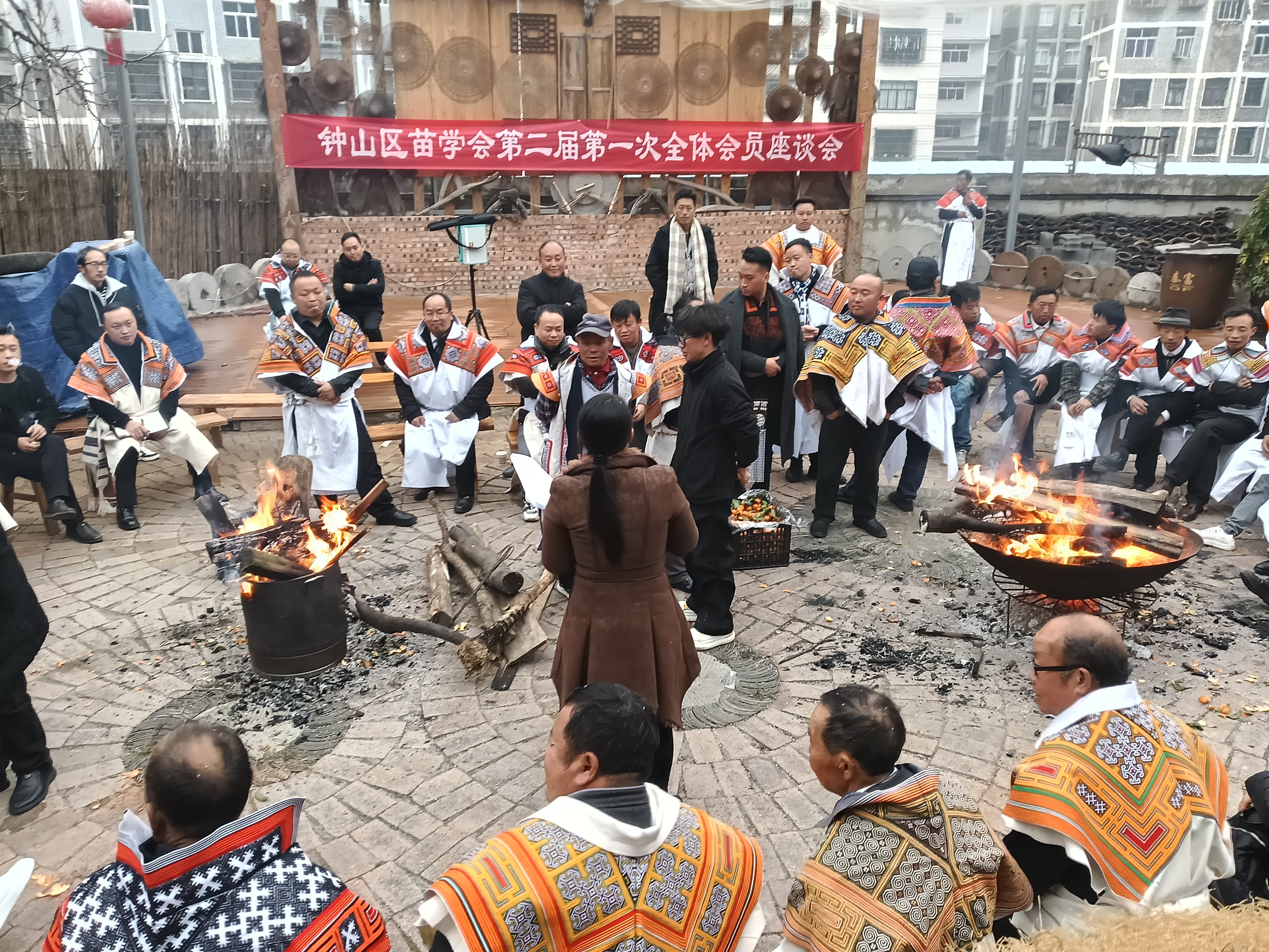 12月27日,六盘水市钟山区苗学会第二届第一次全体会员座谈会在钟山区德坞街道兴民社区旮旯苗寨隆重召开。旮旯苗寨青瓦木楼,火塘焰火跃动,60余名会员齐聚一堂,共话民族文化传承与振兴新篇。